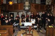 Weihnachtskonzert in Ramholzer Kirche – 620 Euro Spenden für Waisenhaus Das konzertante Musizieren und Singen in der evangelischen Kirche Ramholz hat Tradition. Besonders seit Hartmut Darmstadt Organist ist. Am Mittwochabend erfreute er zahlreiche Zuhörer in der kleinen Dorfkirche mit einem Weihnachtskonzert, das, wie Darmstadt bei der Begrüßung sagte, aus Termingründen ein nachweihnachtliches Konzert werden musste. Das Schönste aus seiner langen Dirigentenzeit bei den beiden Ensembles werde man bei dem Kirchenkonzert vortragen, so Darmstadt. Das im Jahr 2000 mit Gesangssolisten gegrün-dete Hutten-Ensemble bestehe eigentlich seit 2012 nicht mehr, aber als Projektchor für be-sondere Anlässe fänden sich die Sängerinnen und Sänger wieder zusammen, um mit ihren Auftritten zu erfreuen. Das Bläserensemble leitet Darmstadt seit 1986. Die Darbietungen des A-Capella-Chores, des Bläserensembles Schlüchtern und von den Gesangs- und Instrumentalsolisten waren sehr hörenswert. Und auch die Besucher wurden, wie bei „Tochter Zion“, „Es ist ein Ros entsprungen“, ober beim finalen „O, du fröhliche“ zum Mitsingen eingeladen. „Übers Gebirg Maria geht“ von Johann Eccard, das Adventslied „Maria durch ein Dornwald ging“ und „Licht ins Dunkel“ von Gerhard Track sang das Hutten-Ensemble unter Leitung von Hartmut Darmstadt, der teilweise auch am Piano begleitete. Mit „Die Hirten“ und „Die Könige“ aus den Weihnachtsliedern von Peter Conelius glänzten an der Ratzmann-Orgel Hartmut Darmstadt mit den Solisten Verena Dietz (Sopran), Martin Kaufmann (Bass) und der Posaunist Max Steffan. Bei „Noel“ des französischen Komponisten Louis-Claude Daquin entlockte der Kirchenmusiker Darmstadt der Orgel seine phantastische Klangvielfalt. Nach den beiden Volksliedern „Wisst ihr noch, wie es geschehen“ und „Nun singet und seid froh“ sang der Chor getragen das Schlaflied „Schlaf, mein Kindelein“ von Max Reger und das „Weihnachtswiegenlied“ von John Rutter. Beim „Song of Glory“ von Michael Schütz konnten die Bläser-Instumentalisten ihr Können unter Beweis stellen. Ebenfalls ein Ohrenschmaus „Ich steh an deiner Krippe hier“ aus Johann Sebastian Bachs Weihnachtsoratorium, vorge-tragen vom Hutten-Ensemble und dem Bläserensemble. Als Solistinnen sangen Verena Dietz und Ann-Christin Wolf auf der Empore, begleitet von Hartmut Darmstadt an der Kirchenor-gel, den „Abendsegen“ von Engelbert Humperdinck. „Das Weihnachtslied schlechthin „O, du fröhliche“ sangen und spielten alle zum Abschluss des Konzertes. Langer Beifall war der verdiente Lohn für die jungen Musiker und Sänger, sodass noch als Zugabe das englische Weihnachtslied „We wish you a merry christmas“ gespielt und gesungen wurde. Pfarrer Jochen Lins dankte allen Mitwirkenden und besonders Hartmut Darmstadt. Bei Glühwein-Gesprächen nach dem Konzert wurde in der Kirche noch lange über die Darbietungen gesprochen. Die Spenden, die am Ausgang erbeten waren, werden für ein neues Waisenhaus in Bharatpur/Nepal verwendet, wofür sich Darmstadt engagiert. Insgesamt kamen auf diese Weise 620 Euro an Spenden zusammen. (Walter Dörr)